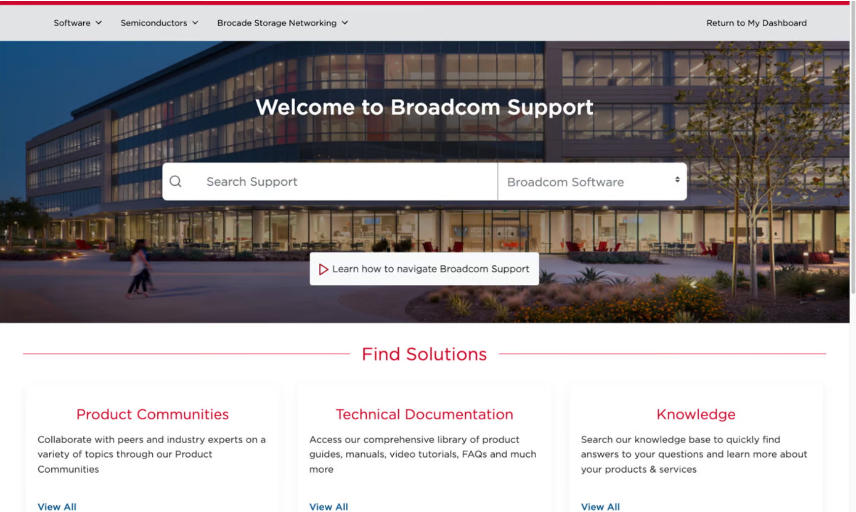Broadcom의 새로운 셀프 서비스 포털에 액세스한 고객은 등록 및 자격을 얻기 위해 간소화된 SSO 통합 프로세스를 통해 인증됩니다. 그런 다음 자격을 갖춘 대시보드에서 고객이 필요한 모든 콘텐츠에 액세스할 수 있습니다.