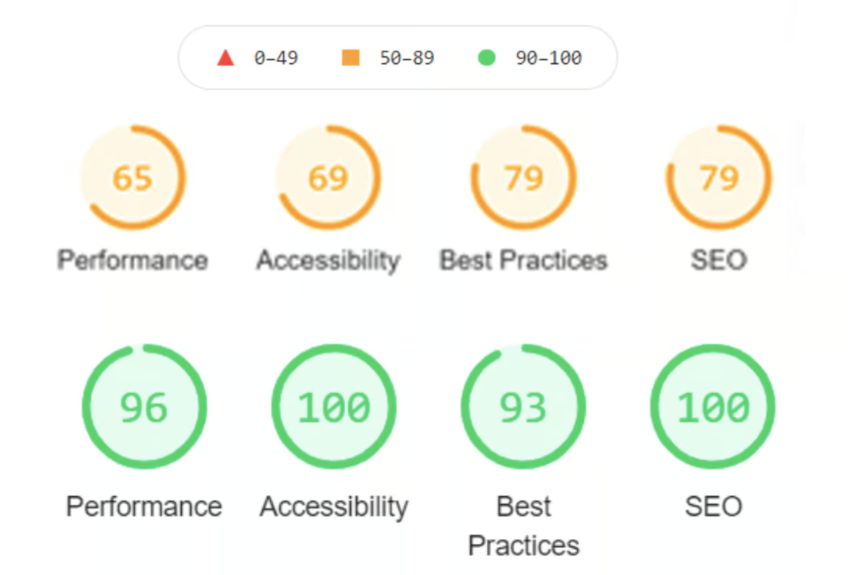 Lighthouse 보고서 점수 전후 비교