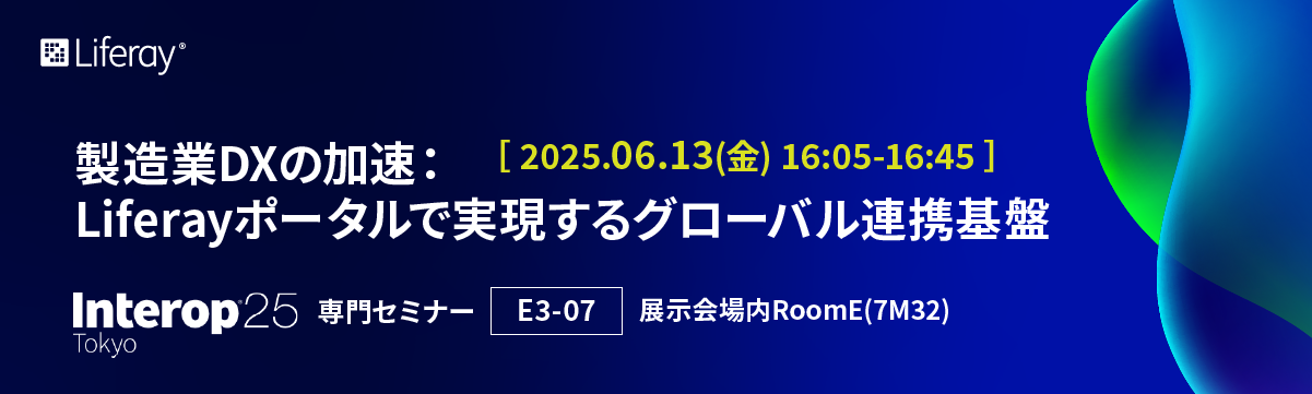 [終了しました]Interop Tokyo展示会場内で行われる専門セミナー『製造業DXの加速:Liferayポータルで実現するグローバル連携基盤』を6/13(金)16:05~開催